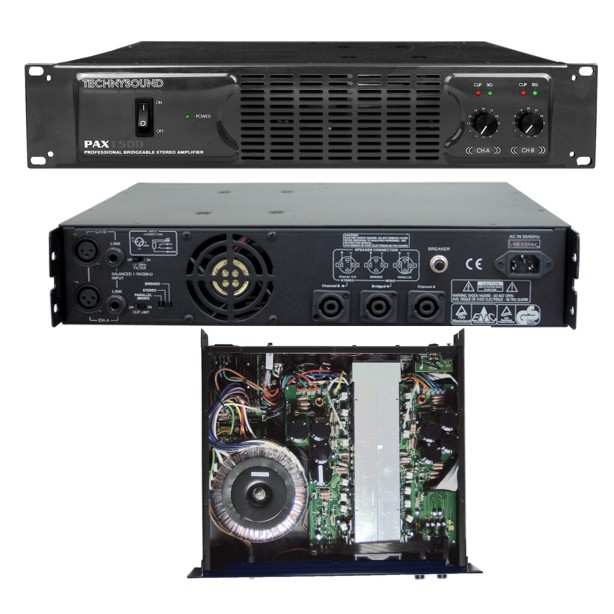 Fonction filtre avec coupure de fréquence à 80Hz sélectionnable par canal. Refroidissement efficace par air forcé empêche l'accumulation de chaleur excessive. Entrées XLR symétriques et Jack asymétriques. Bande passante : 20 Hz à 20.000 Hz + /-0.2dB THD : < 0,1% Rapport S/B : 100dB Sensibilité : 0 dB Impédance d’entrée : 10 KOhms Indicateurs LED : crête, signal, protection, alimentation Mode stéréo / bridgé 2 x 350W RMS @ 4 Ohms 2 x 700W Max @ 4 Ohms 2 x 200W RMS @ 8 Ohms 2 x 400W Max @ 8 Ohms Bridgé : 1 x 600 W @ 8 Ohms Dimensions : 480 x 88 x 400 mm E08982C PRIX TTC 258 €